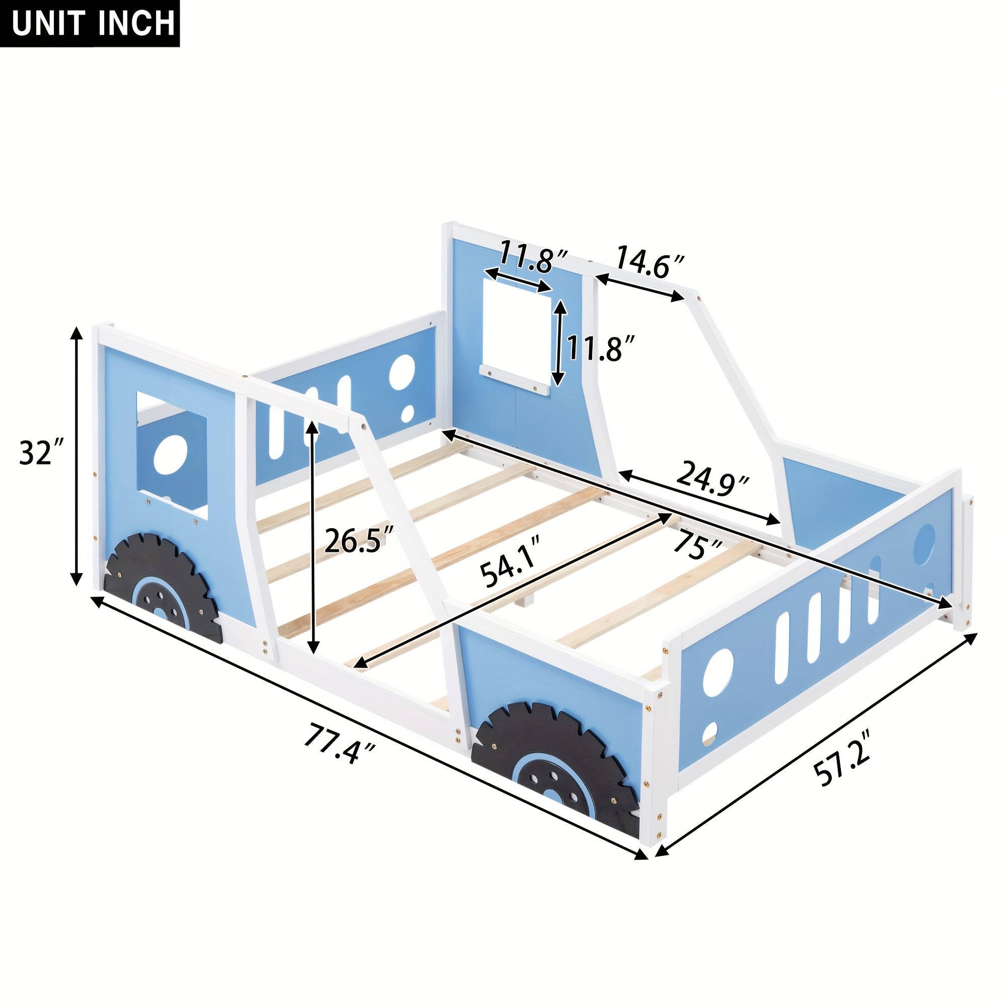 Bellemave Full Size Car Bed with Headboard & Footboard, 4-Side Rails - Sturdy Wood & MDF Construction, Blue Race Car Design Bed Frame with Safety Rails, Easy Assembly, No Box Spring Needed, Modern Bedroom Furniture & Teens (Ages 6+) - Durable Bed fo