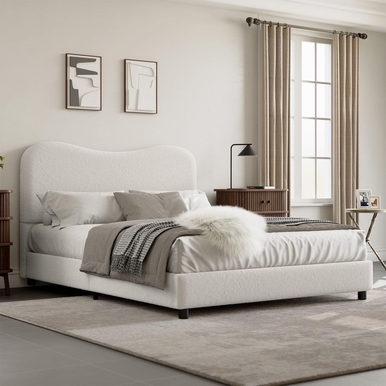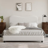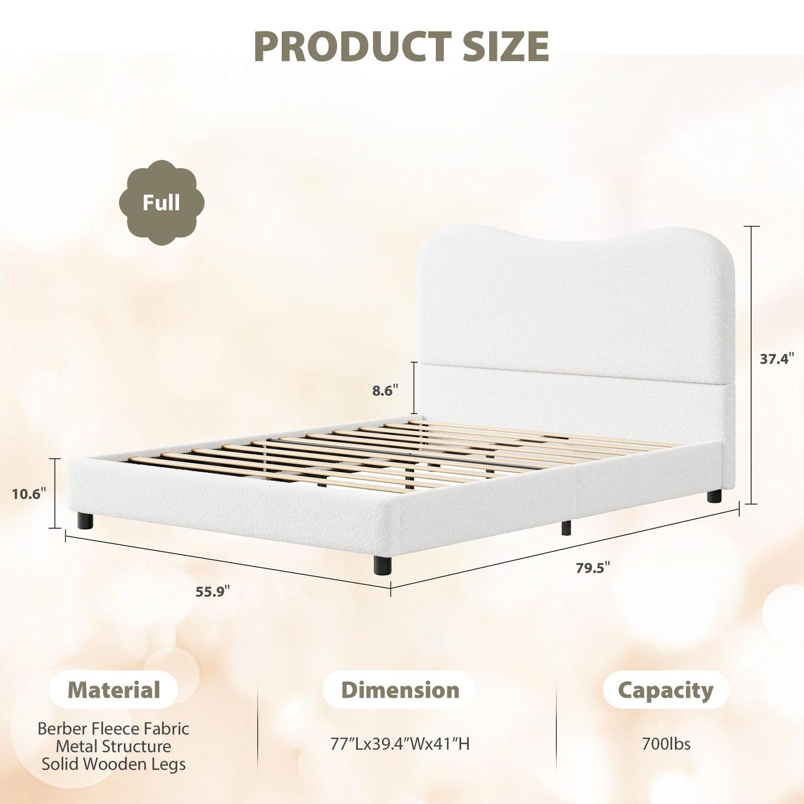 Full Size Bed Frame for Kids with Velvet Upholstered Headboard, Cute Low Profile Platform Bed for Girls and Boys, No Box Spring Needed, Strong Wooden Slats, Noise Free, Easy Assembly, White, Childrens Bed, Kids Bedroom Furniture, Contemporary Design