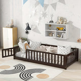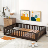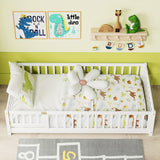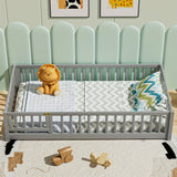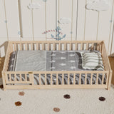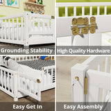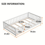Kids' Double\u002FFull\u002FQueen Bed Frame, Solid Wood with Reinforced Horizontal Bars, High-Safety Safety Rail and Fun Small Door Design, Durable Bed Suitable for Girls and Boys, Helps Develop Independence, Easy to Assemble