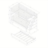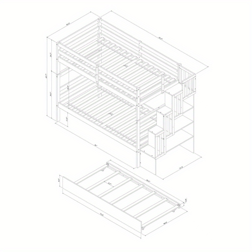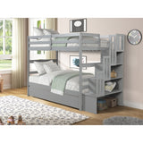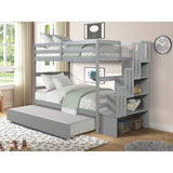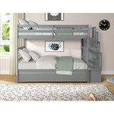 RIDFY Twin over Twin Bunk Bed with Twin Trundle & Stairway Storage - Space-Saving Hardwood Frame, Retro Style, Easy Assembly, Grey - Ideal for Youngsters' Rooms, Guest Bedrooms, Dorms