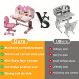 2pcs Set 41.37*28.57*19.11 inch Multi Bookcase Wider Desktop Table and Chair Set Cartoon Pattern Adjustable Height Study Drawer Table with Chair