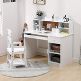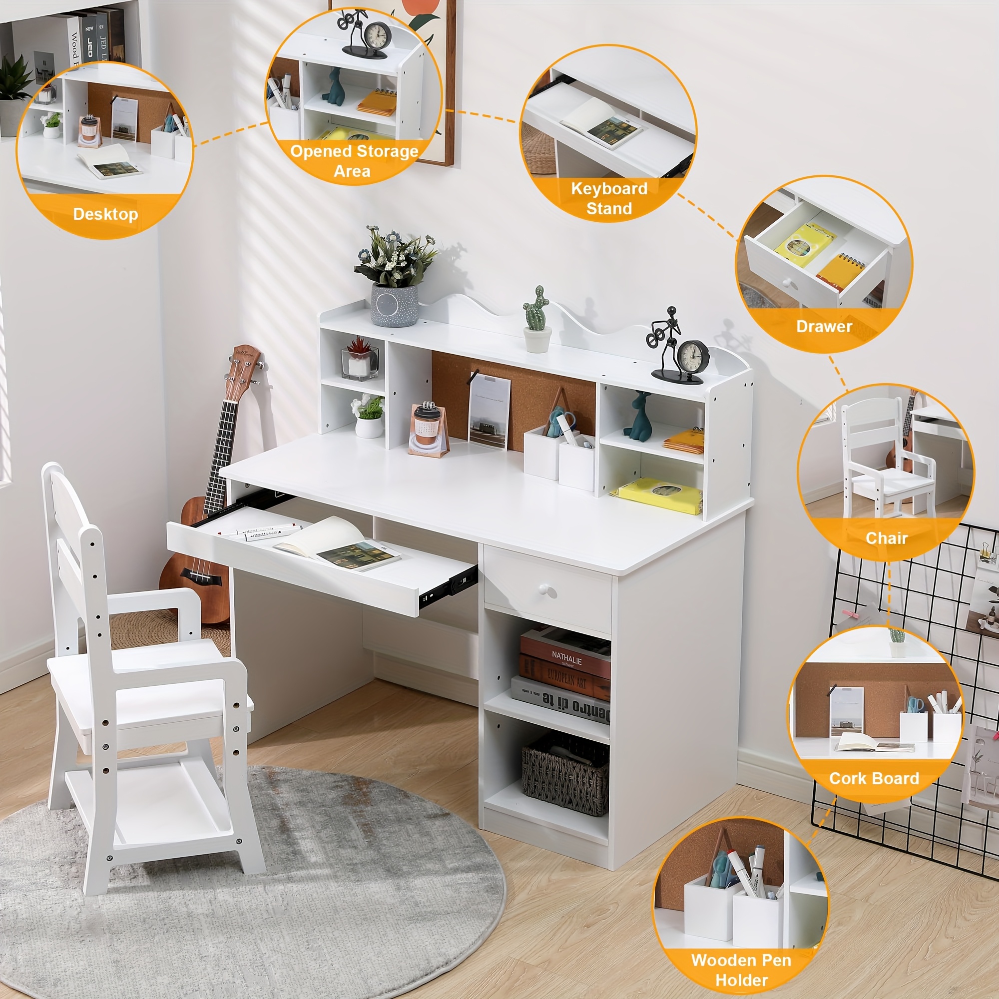 Kids Desk And Chair Set, Wooden Study Table with Storage Shelf, Bulletin Board, Keyboard Stand And Pen Holder