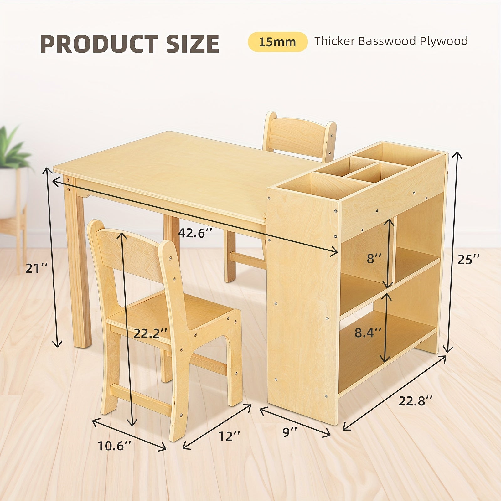 Wood Toddler Activity Table Wood Toddler Activity Table with 2 Chairs, Large Storage Shelves for Writing Drawing Suitable for Playrooms & Classroom