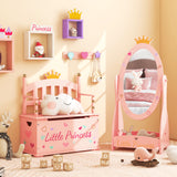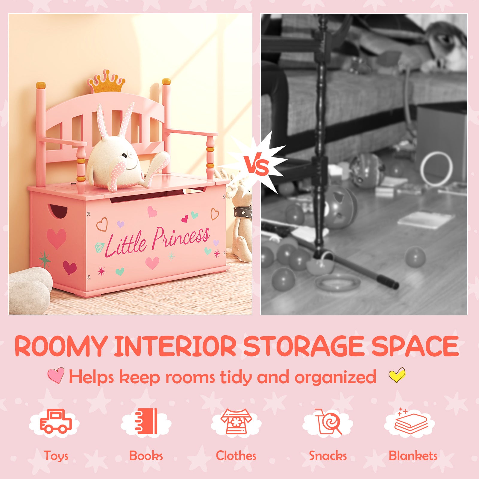 COSTWAY Kids Toy Storage Organizer, 2-in-1 Toy Storage Chest & Bench, w\u002F Safety Hinge & High Backrest, Cute Crown Pattern, Toy Storage Organizer for Kids Room, Playroom, Nursery