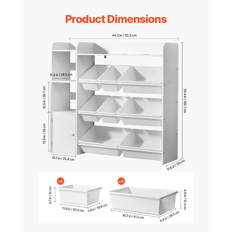 Quality Assurance Toy Storage and Bookshelf 4Tier Toy Storage Organizer with 8 Flexible Plastic Bins Cubby Cabinet with Bookshelf for Study Room Bedroom Playroom Classroom Nursery White Currently on sale