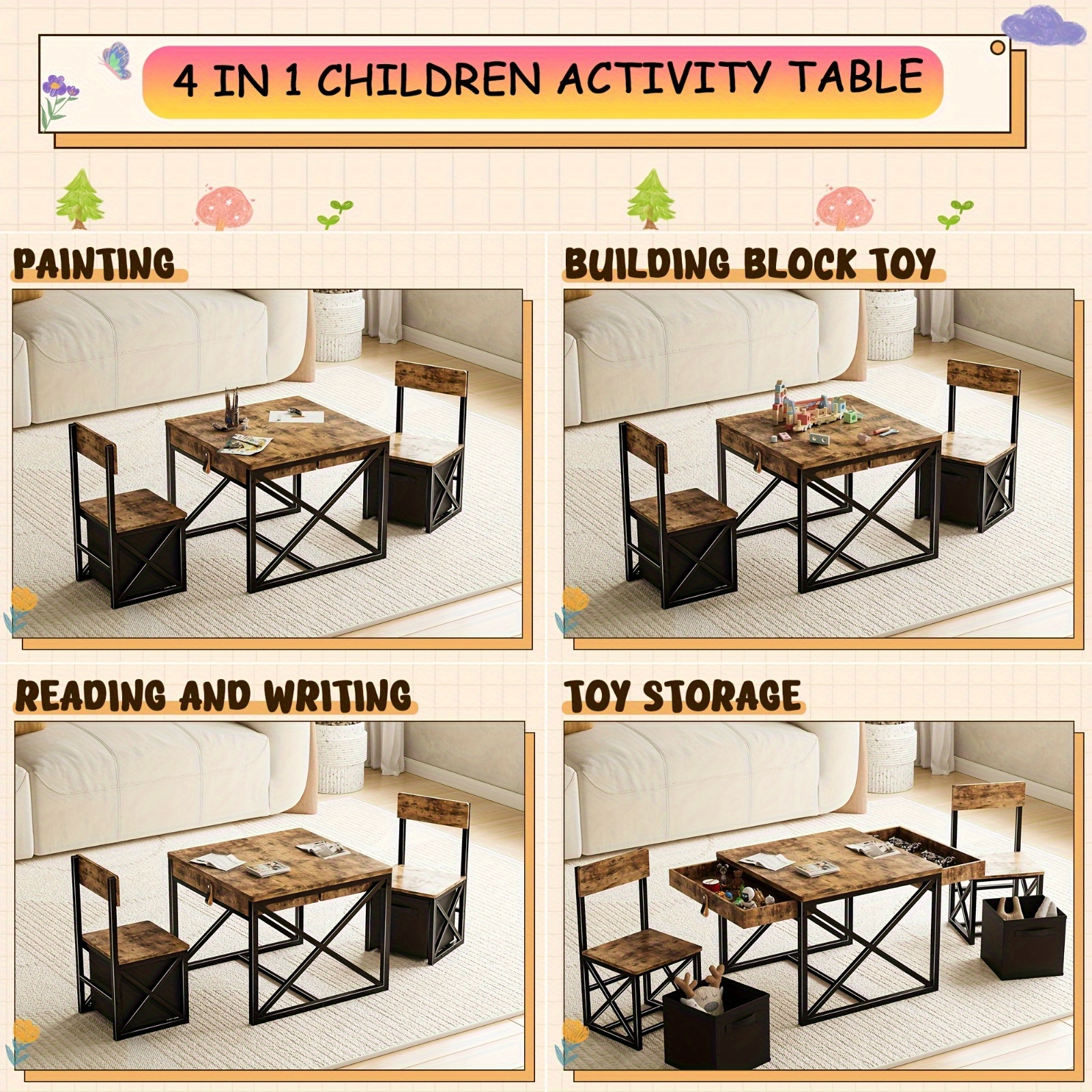 4-in-1 Kids Table and Chairs Set with Storage, Toddler Activity Desk for Crafts, Drawing, Reading - Ideal Furniture for Learning and Play, Youngsters'S Room Furniture|Stylish Dining Set|Secure Folding Chair, Youngsters Room Furniture