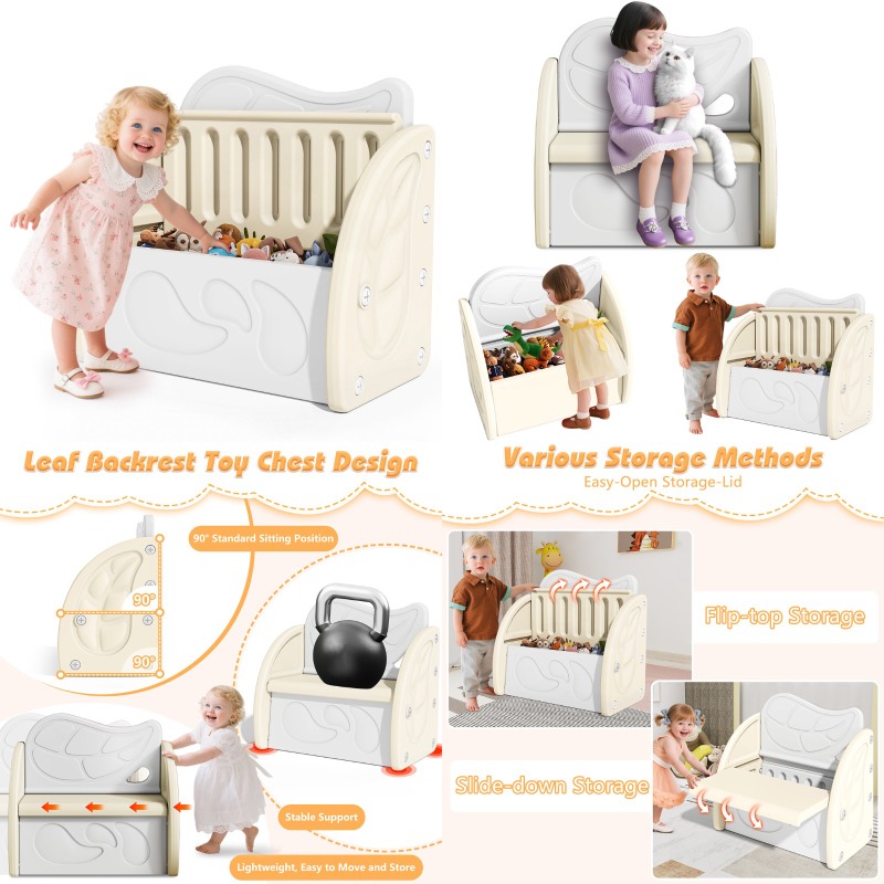 Plastic Toy Storage Organizer with Bench & Leaf Backrest, Playroom Furniture, Playroom Organization, Storage Bins, Toy Box, Toy Storage Box, Toybox, Playroom Must Haves, Small Space Organization, Toy Cabinet, Toy Container, Toy Organiser, Toy Storge