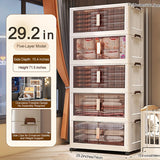 Stackable Storage Cabinet 5-Tier Stackable Plastic Storage Cabinet System - Large Capacity Organizer Bins with Doors & Wheels, Foldable Space-Saving Storage Solution for Home Organization, Easy Assembly for Bedroom, Living Room, Kitchen