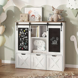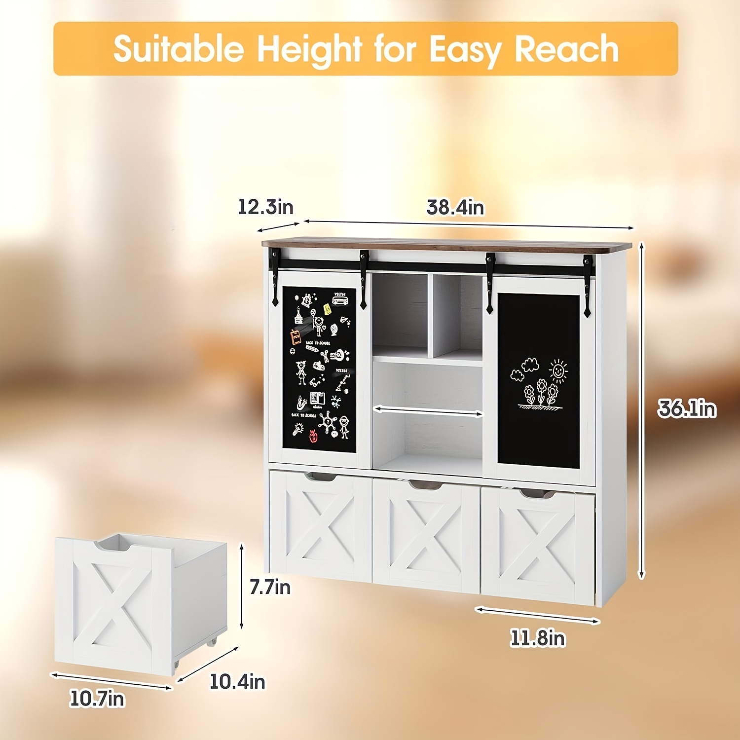 Storage Organizer With Sliding Blackboard, Bookshelf And Bookcase With 3 Movable Drawers & 5 Storage Cubbies, Multifunctional Storage Cabinet Chest For Playroom, Bed Room