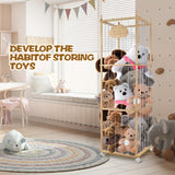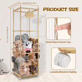 Zoo Animal Wooden Storage Rack 3-Tier Sturdy Zoo Animal Wooden Storage Rack with Elastic Rope & Lockable Wheels - Cedar Finish Lightweight Organizer for Stuffed Animals, Perfect for Bedroom, Ideal Christmas Gift